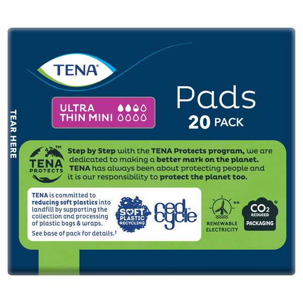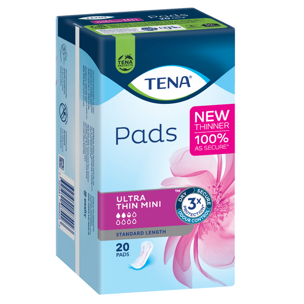 TENA Pads Ultra-Thin Mini Standard Length offers discreet and reliable protection, specifically designed for women with light bladder weakness.
